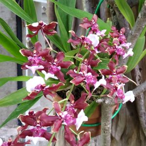 ♫植物園の蘭シリーズ♫第27弾 オンシジウムは400種以上の品種があると言われています。 黄色い花をイメージするオンシジウムの中で これはワインレッドのとても シックな小花で シャーリーベイビーと言う品種です。 バニラのような仄かに甘い香りがします。 ドレスを着て踊っているような花姿から 英名は ダンシング バレリーナと呼ばれているとか…。 中央・南アメリカ原産。 ラン科オンシジウム属の多年草。 ※下の「@ラン」のタグから♫植物園の蘭シリーズ♫のバックナンバーをご覧頂けます。