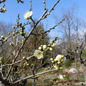 今日のお花はウメ(梅)です。 梅の原産は 中国で 弥生時代に朝鮮半島を経て入って来たと言う説と 奈良時代に遣唐使が持ち帰ったと言う説があります。 万葉集では2番目に多く登場する植物※で 百首以上が詠まれていますが この時代の梅は白梅が そして 平安時代になると紅梅がもてはやされるようになったのだとか…。 ※万葉集で一番多く詠まれているのは 萩です。 中国原産。 バラ科の落葉小高木。