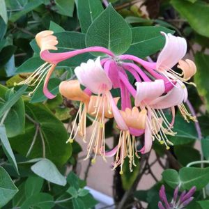 今日のお花スイカズラは英名でハニーサックルと呼ばれています。美しいシェープで お気に入りの1つです。 花の外側が濃いピンク 内側は咲き始めのクリームからオレンジに変わっていきます。 ハニーサックルの花から抽出される甘い香りの精油は 僅かしか取れないので とっても高価なアロマオイルなのだそうです。 ヨーロッパ 西アジア 北アフリカなど原産。 スイカズラ科スイカズラ属の落葉性蔓性植物。