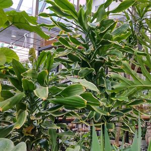 今日のお花 ならぬ 今日の葉っぱ ドラセナです。 葉の色や形が豊富な観葉植物ですが 10年に1度だけ花が咲くと言われています。見たことはありませんが…。 直射日光を避けて 日当たりのいい場所で乾燥気味に育てます。 幸福の木の別名の通り 幸運と金運を引き上げてくれる植物として 玄関に置くのがいいようです。 熱帯アフリカ原産。 キジカクシ科ドラセナ属の常緑低木。