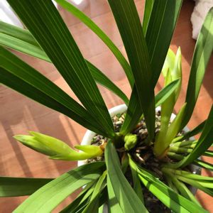 今年は暖冬で廊下で冬越しの シンビジュウムの鉢に 蕾が三本出てました! いつも三月頃なのに 今年は暖かいです❗️
