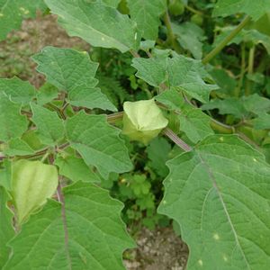 今日のお花ホオズキ、 ではなく、 食用ホオズキです。🍅 7月1日のお花がホオズキの袋らしきものになってきました。まだ1センチほど。 葉の裏を覗きこまないと、お花も袋も見えませんでした。
