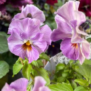ビオラ アールヌーボーさん🌸 ピンクとも紫ともいえない なんとも素敵なお色💕 そしてかわちいお顔😊 お花があちこちいろんな方向向いてて ちょっと撮影しにくいけど😅 とりあえず左側の子にピントを合わせてパチリ✨