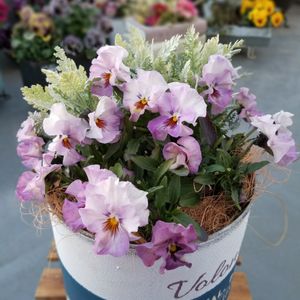 植え付け時のアール・ヌーヴォー😊 今はもう少し成長中✨ 株の充実のためには、今は花を 切り落とした方がいいとは聞きますが 初めてお迎えするアール・ヌーヴォーに惚れ惚れして なかなか切り戻しできません😂💦 球根を一個しのばせ、 ダブルデッカーにしています❗️ ガーデニング始めるまで、 こんなにビオラが進化しているとは 知りませんでした👀‼️ 奥に写っているのは、 パンジー、シロタエギク、葉牡丹の 寄せ植えです😄