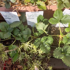 先日購入したイチゴのよつぼし 種から育てた苗なのか、植える向きが分からないな? 来週プランター購入して植え替え予定
