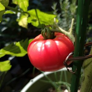 おはようございます。久しぶりの投稿です! 今年初挑戦している大玉トマトが、やっと一つ収穫できました。肥料過多で茎が極太になってしまい、脇芽を長く伸ばしたり、株元にシソ、バジル、小ネギを植えてみたりして対策してみましたが、なかなか解消しませんでした。やはり大玉は難しい〜😅 でも収穫できた時は、実が大きい分、喜びも大きいです🍅 今年は大玉、中玉、ミニを一本ずつ育てています。中玉とミニも少しずつ採れ始めました。 オクラは初めて種から育てたので愛着もひとしおです。 暑くなり虫も出てきて心配だけど、まだまだ沢山収穫できますように🙏