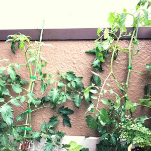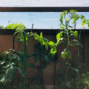 おはようございます🤗 トマトがだいぶ成長したので、三角支柱を立てました😊