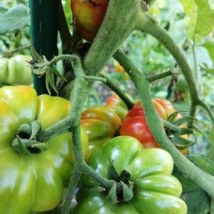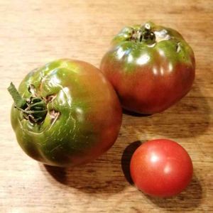 大きいの2つはblack russian 手前のは、色の違いが分かるようにふつうの赤いトマトです ワイルド〜😅