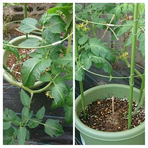 早くも二段目の花が咲いてきました。🤗💕💕🍴 2鉢10号に植え 行灯仕立てにして半周回ったところです。🤗🎵 脇芽ひとつ伸ばして2本の枝に何個実がついてくれるか今から喉から手が出そうな私です。🤗🎵🍴 妄想果てしない食いしん坊です。🤗🎵🍴