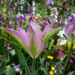 去年の春に咲いたチューリップ・パープルドールです。百合咲でビリデ系(緑色の入った色彩を持つ系統)、ちょっぴり大人の雰囲気を持つ品種です。