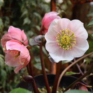 何年か前にクリスマスローズの種をMIXでいただいたのを育てていて、その中の4株が今年初めて開花しました😃 なんと、ピンクニゲル💕 ダブルなのかセミダブルなのかはまだ分かりませんが、先日お迎えしたシングルのピンクニゲルと並べて愛でてます☺️ あ〜,かわいいっ❤️