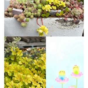 こんにちは♪ まるで梅雨明けしたような、爽やかな朝です❣️ 🏷️カレンダーの日 4日目は、ほのぼのと、マルバマンネングサとセダムの寄せ植え✨✨