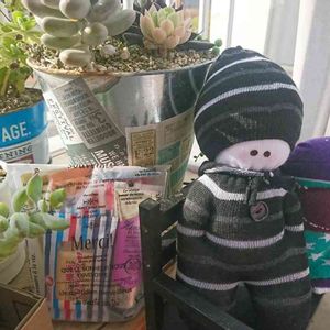 こんにちは(*´ω`*)ノ))〜 昨日、娘が夜ご飯友達と食べるからと 言うので、お昼ご飯に鏡開き ぜんざいを作っていたら、ちぃさんからの ソックス君と共に、可愛いピック、 美味しいお菓子の素敵便(*ˊᗜˋ*)/♡ 年初めのご挨拶に 可愛い子とご縁がありますようにって 🌾したら願いが叶いまして 家にお迎えする事が出来ました〜 思った以上の可愛さに😍😍 ちぃさん、願いを叶えてくれて本当に (*´∀人)ありがとうございます♪ 大切な宝物が増えました〜 何処で撮ろうと迷って キレイに咲き始めたビオラとこもち連華の 寄せ植えと、一緒に撮ってみたよ こもち連華は夏頃、元々、ポーチュラカの 寄せ植えだった所に何となく保険で 置いておいたのが環境が良かったのか? グングン育って花まで咲いてます。 元の親株は何故だか☆に💦 今度はここから保険を作る事になりました