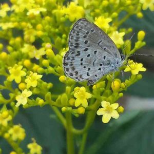 No.98 オミナエシ(女郎花) スイカズラ科オミナエシ属 その3 オミナエシとヤマトシジミです💓 平城天皇の時、小野頼風という男が、男山に住んでいました🎵 深く契った女があったが、頼風につれなくされて八幡の放生川に身を投げました🥴 男は女の思い違いを悲しみ、屍を引き上げて男山の麓に埋葬しました☺️ その女の衣が朽ちたあとに咲いたのが、女郎花だといわれています🎵 花は頼風を恨んで、頼風が近付くと、反対側に靡いたと伝えられています😅 能の一つに「女郎花(おみなめし)」があり、紀貫之の仮名序の注釈書である「三流抄」に記されたこの女郎花の説話がもとになっています🍒 女郎花憂しと見つつぞゆきすぐる男山にし立てりと思へば 僧正遍照 古今和歌集 巻 4-227