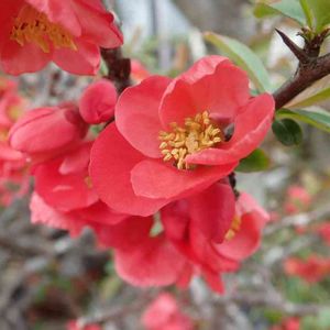 No.311 ボケ(木瓜) バラ科ボケ属 その2 木瓜の花は春の花の中では一番妖艶さが漂う花じゃないかな💕 美人さん💕ですよね😅 昔、子どもが出来ずに悩んでいた女性が、修験者に授かった木瓜の実を服した途端、良縁と子宝に恵まれたという子宝伝説が、『冠稲荷の木瓜』の花の伝説として冠稲荷神社(栃木県太田市)に伝わっています🎵 この木は栃木県の天然記念物にも指定(昭和31年1月14日)されています💕 木瓜の木のくれなゐうすく茂れれば雨は日毎にふりつづきけり 長塚節