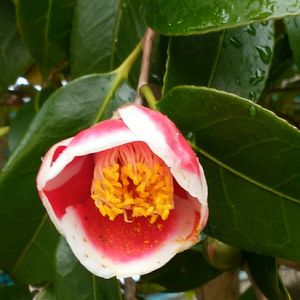 2月半ばポツポツ雨の中、椿の赤の小柄な玉之浦がこれまたぽつぽつと咲き出した、まだツボミはあるし、しばらくは楽しめそうだ、ツボミホンノリ色づき出しても開くのに2-3週間かかったわ