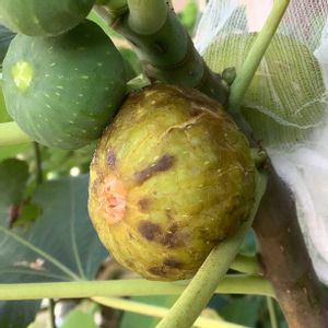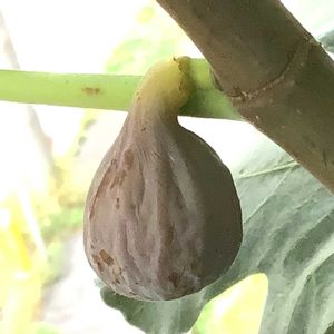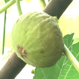 果実の日の当たるところがかなり色づいて全体が軟らかくなっていたので採って見ました 3年生のバローネの11個目の秋果になります 果実は26gとかなり小さくなりました 果実を切っている時にいちじくの甘い香りがしましたので期待しましたが、甘味はやや薄いものでした それでも果肉は軟らかく美味しくいただきました 少し過熟気味だったかも知れません 20251005収穫 20251005撮影