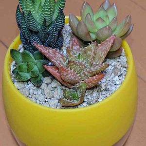 💐今日は晴れたり雲ったり雨降ったりと目まぐるしい天気だつた、庭いじりぜーん全進まんかった・・・・だからこんな物をこしらえて見ました。 ハオルシア硬葉・レインワルディ アロエ・翡翠殿 セダム・月の王子 の三種盛りです。(⌒‐⌒)