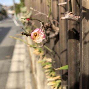 春を探しに! 何と!何と!見過ごす所でした! 僅かな、まだ赤い花芽の中で一輪だけ、、 今まさに花開こうとしている、、 可愛い! 梅ですよね! 見つけたよ!頑張ってるね!