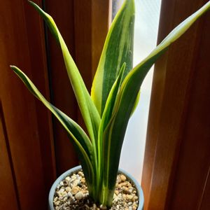 陽の光が全く当たらない店内で、葉がビローンとほぼ真横に開き自立出来ない状態で売られていたサンセベリアを救出して、4ヶ月。 開いた葉を紐でまとめて、どれくらいの自立できるようになったか、紐を外してみました。 連れて帰ってきた時に比べると随分マシになった✨ もうこれ以上は自立しないかなぁ🤔