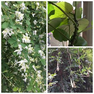 白い萩 ウンベラータのワイヤー掛け これで良いのかな〜 山藤の種、豆ですね〜