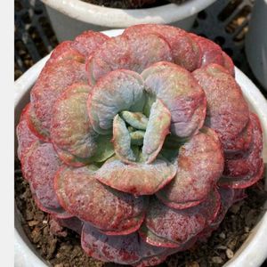 おはようございます☀️🙋♀️❗ 昨日の嵐で、スタンド鉢用のビニールハウスが危うく吹き飛ばされそうになり、大変でした😱 今シーズンの寄せ植えはおしまい…と言いながらも、おひとり様をお迎えしてしまいました☺️ ハートディライト 🍀肉厚の大苗です✨真っ赤に紅葉しています🍁 フィオナ×ルブラ エボニー×クラバツム コロラータ×タバルバ🍀等々☺️ お外でバッチリ紅葉してもらって🍁越冬頑張るぞ~👍️
