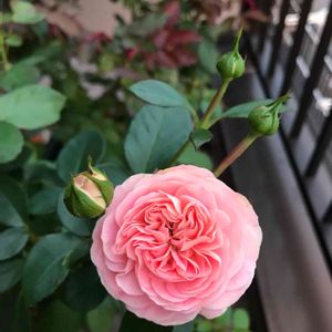 自分の部屋に避難している薔薇 有機肥料による虫さんが怖いのでゴミ袋で鉢を覆いました。 台風なんて嫌ですね…