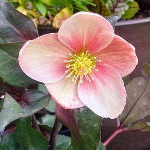 おはようございます😄☀️ 元日のお年賀のpicの クリスマスローズ*ピンクフロスト 3輪目が開きました♡ ライトローズからダークローズに色変わりが楽しめます♪ ニゲルとリビダスの原種交配種☆