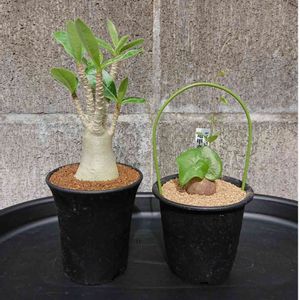 出会いを求めて、 観葉植物🪴売り場で、 憧れのアデニウムアラビカム発見❤️ 右は、オベサハイブリッド。 大事にします。