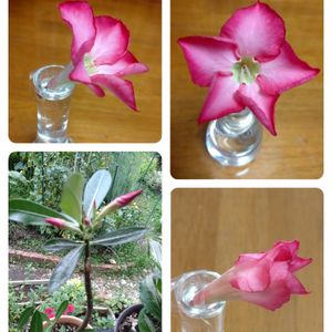 アデニウム アラビカム 結構大きな蕾がポロンと落ちたから、小さな花瓶にセロテープをつけて、花の根元が水から出ないようにして2日 やっと咲きました。