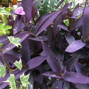【トランディスカンティア (ムラサキツユクサ)属 パリダ プルプレア】 Tradescantia pallida 'Purpurea' 和名 紫御殿(ムラサキゴテン) 紫大露草(ムラサキオオツユクサ) 別名 purple secretia purple heart purple queen 淡い紫の花は萎みましたが、 炎天下放置でも苗は元気☀ 半分は挿し木して、 残りの半分は水に挿しました 旧属名はセトクレアセア属 Setcreasea 現属名のTradescantiaは、 17世紀英国の植物学者 John Tradescantの名に由来 「pallida」は恐らく、 変化形容詞 pallidus,-a,-umから 「蒼ざめた」という意味かと メキシコ東部、原産🇲🇽 ☆source☆ 【花*花・flora】さん http://www.juno.dti.ne.jp/~skknari/Tradescantia%20fluminensis%20Vello..html
