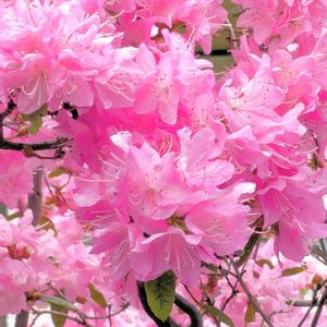 「アザレア満開❗️」 住宅街の通りを歩いていると植込みの間から、真っピンクのアザレアが満開🌸でした〜🥰 📸曇りでも、この鮮やかさは凄いです❗️ ⏬️G.Sサイト引用📝 アザレアは春に開花するツツジの種類です。タイワンツツジを改良して、ベルギーを中心としたヨーロッパで誕生しました。西洋ツツジやオランダツツジ、アゼリアとも呼ばれいます。 豪華な印象の花を咲かせますよね。 白色やピンク色など様々な花を咲かせ、色別に花言葉を持っています。 ⏬️ ピンク色の花言葉「青春の喜び」
