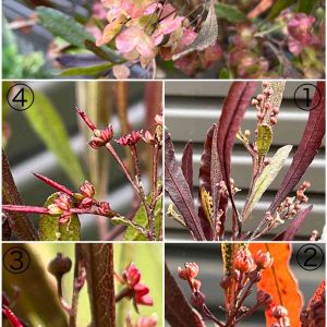 優しいピンクのサヤが可愛い(๑˃̵ᴗ˂̵) ドドナエア プルプレア 4月中旬①蕾②開き始め③可愛い花が✨ ④咲き終わるとピョンと針のようなものが伸びて…⑤現在の様子 来年は④〜⑤までの様子を詳しく観察したいです_φ(・_・ ドライフラワーになるそうです。 もう少し木が大きくなったら試したいです。