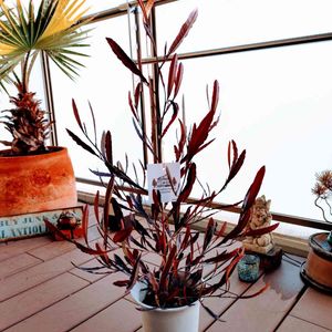 面白い〜❣️葉だけでなく茎も紅葉するのね〜😍 この先根元まで染まっていくことでしょう。 ポップブッシュはグリーンのまま紅葉しない品種もあり、 交互に植えると面白いです。 ポップブッシュ プルプレア(パープレア) トドナエア オージープランツ