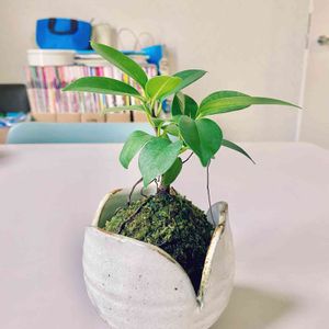今日、里子に行ったガジュマルさん🤗🪴 お誕生日を過ぎてしまったけれど、後輩へのプレゼントです😊🎁 私は、丹精込めて育てた子を手放すことは滅多にないのだけれど、彼女なら大切に育ててくれると思って託しました☺️ 苔玉の中身はケト土。 水苔で包み、木綿糸を巻いてあります🧵 乾いたら丸ごとバケツにドボン🪣💦 後輩とは誕生日が1日違い😊🎂😊 自然が大好きで夜明けから深夜まで自然を満喫している彼女と、明日は早朝のソライロタケに会いに行ってきます🥰🍄