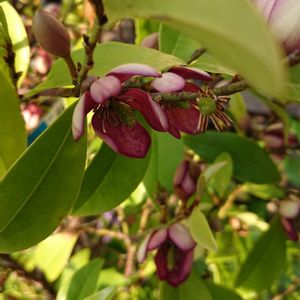 おはようございます☂️ カラタネオガタマ 赤いのはポートワインという 品種だそうです バナナの香りがしました