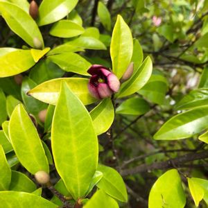 カラタネオガタマ ポートワイン ホームセンターで見つけました。他の方の投稿で見て気になっていました。ホームセンターで観察( ⚭_⚭)✧