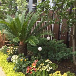 ソテツなど、大きなものは変わらず。 お花は春らしくなっていました。