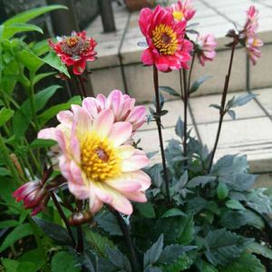 銅葉ぷちダリア ピーチラバーズ 去年の秋にお迎えして二度目の開花❁⃘*.゚ この色に一目惚れでお連れしたダリアさん♡ シックな黒い茎に銅葉〜緑銅葉色 で、このキュートなピンク色 大人可愛い~しぶ可愛い〜って感じかな〜 ( ´͈ ૢᐜ `͈ૢ)・*♡੭ੇ৸♡੭ੇ৸♡ 一般的なダリヤよりお花は小輪 多花性でコンパクトにまとまるので 清楚でかわいらしい花姿です♡