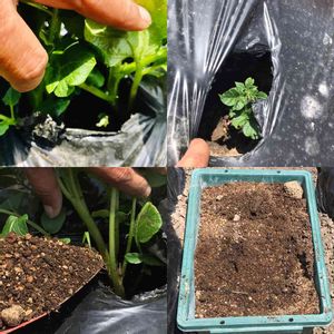 今日はまとめに出来ずに🙇♀️ ジャガイモの作業です🥔 マルチをしたウネに、種芋の発芽処理をしたものを、15cmほど下に植え付けます。 そのまま伸ばすとマルチの上まで太陽を求めて、ジャガイモの芽がのびてきます😊 穴を埋める様にウネに土を入れます。 伸びた茎が土の中になるので、間の葉は枯れますが、地下茎が伸びて芋が出来ます。 草も生えづらく、新じゃがが、間違って光を浴びて、毒性を持つのもマルチで防げます😊