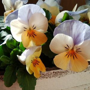 オレンジとアイボリーのお顔に 上半分にブルーがかる・・ なんとも優しいビオラです♡ このお花と花器は*ゆいの杜ガーデンセンターさんで11月に購入しました🍀 ようやく大きくなってくれました😍
