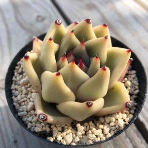 こんばんは( ᵕᴗᵕ )*・☪︎·̩͙ 今日は久しぶりに二和園に遊びに行きました❗️ 暑くなるかな、と思いましたが程々だったので助かりました(^◇^;)💦(笑) 晴れた日の二和園は…ヤバいじぇ…☠️ さて、戦利品のご紹介コーナーでごじゃります〜\( ˙▿︎˙ )/✨ と言っても欲しいものも特になく、情熱もそんなになかったので(夏なので)戦果も程々でごさいます( ˘͈ ᵕ ˘͈ ) 今回も前原のお姐様苗を中心に狩ってきましたよぉ❣️ ヒアリナ×プルプソルム…500円 残り5個×各200円 でしたぁ❗️ なんとストリクチフローラノヴァがΣ(OωO )‼️ ご一緒したKEIKOさんが発見してくれたのですがマジにビックリ&即買いです(笑) ストリクチはね…何個あってもいいよね…←何個あってもいい多肉何個あんだよ(笑) あとは可愛い謎の苗💖 好みのタイプがいたのでゲット👍 そしてパープルエボニーは、もうエボニーってついてたら未発根でも買うよねー( ᷇๑ॢ˃̶͈̀ ꇴ ˂̶͈́๑ॢ)ꉂꉂ¨̮笑笑 逆に未発根のまま夏越して欲しいですわ💦 うん、よし、既存の苗サッサと寄せよ❗️(置き場確保的な意味でも・笑)