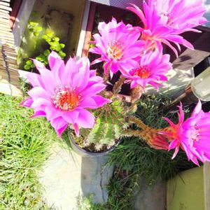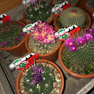 近くのフラワーショップにて、花が咲いているサボテンたち発見!