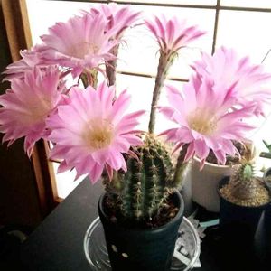 初めて 咲きました。 こんな可愛らしい色のお花だったんだね(❁´ω`❁) 優し〜い桃色♥ ギノカリ…なんちゃら属のなんちゃらの仲間らしいです。 とりあえず、花サボテンってとこで(๑¯∇¯๑)