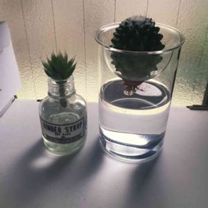 先週買ってきた花サボ、乾燥させたので水栽培スタート☺️ 根っこ詰まってて土とりきれなかったからカビないか心配です…