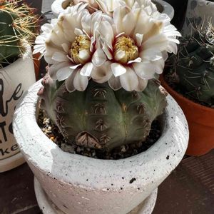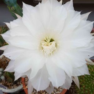 こちらは昨日咲いたサボゃんです! 10年以上前に元カレの家にいたサボテンの1cmカキコを頂戴して育てて今年やっと咲きました! 嬉しいのやか寂しいのやらです😅 純白です!