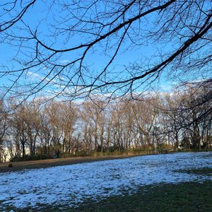 雪の解け残る城址 いつもの散歩コースです。桜🌸の蕾はまだまだ硬く…