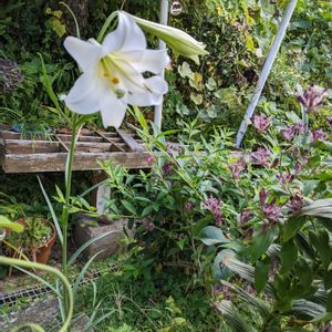 秋になっても、ひっそり咲いてくれてます。テッポウユリ。