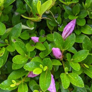 ツボミ付けています。車庫に行く、ザクロ近くには、🟣の花があります。こちらは、ピンク色です。咲いたら、綺麗だろうな!