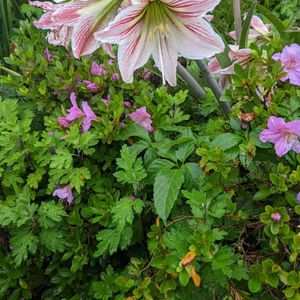ヤハリ、雨は、強いアマリリスを、悩ませます。😥支えなしでも。天気が良ければ、元気にしていますが、横に倒れかかっています。😱